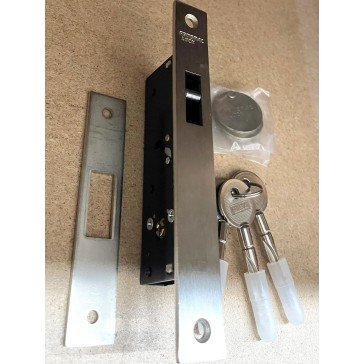 FEDERAL TX190H-CRS NARROW HOOK LOCK – Ideal for sliding doors – Hook type deadbolt – Backset: 19mm – Case Width: 34.5mm – Case Height: 104.8mm – Faceplate Height: 159mm – With 3 tetra/cross keys (Key blank XN1) – Supplied with fixings – Bright Chrome Finish