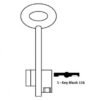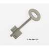 Double bitted safe blank with bullet ward & half moon partial bullet. One of the blanks to suit the Saturn LE range of safes. Was Rottner key blank 116 (T03191). 6 Gauge. Brass Nickel Plated.