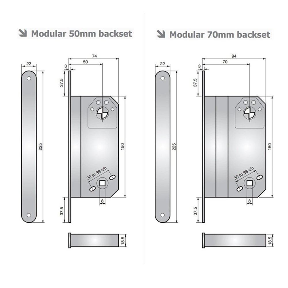 - Available in 50mm and 70mm backsets