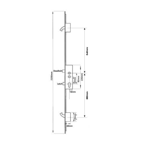This Avantis multipoint door lock features 2 Hooks, 1 Deadbolt & 1 Latch.