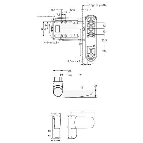 Avocet Triad 3D Flag Hinge for Sculptured or Chamfered Profiled UPVC Doors. 3D adjustment 12-16mm (19mm with packers). Simple Allen key adjustment.