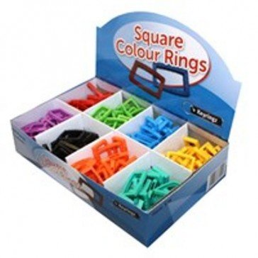 200 Large, square key bow rings for easy identification of keys. 8 Assorted colours per box.