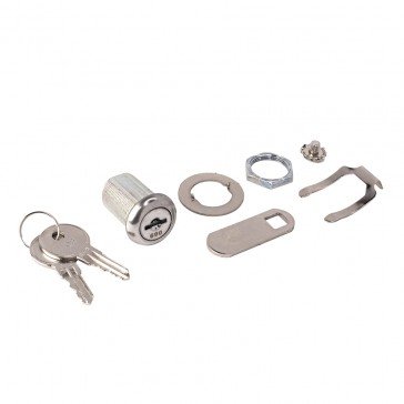 27mm round face nutfix camlock, key removable, 180 degree movement, supplied with 2 keys, keyed alike.