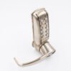 Codelock CL4010 is a medium-duty lock. The outside lever turns freely without operating the latch bolt. When a valid code is entered and the blue LED lights, the lever will retract the latch bolt. When the door closes the spring latch will automatically lock the door. The key will open the door for management functions. The key may be used to set the lock into Code Free mode so that anyone can open the door without using a code. Code Free Mode can also be programmed at the keypad using the Master Code.