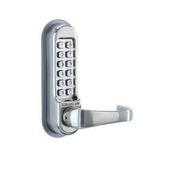 High-traffic digital door locks with full-size lever handle for use with existing mortice latch or lock.