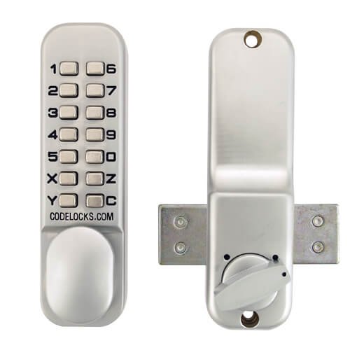 This Codelock low duty digital door lock features a surface deadbolt, ideal for 35-65mm thick shed doors, gates, inner office doors, storage rooms or cupboards in commercial premises, garage-to-house doors or cupboards at home.