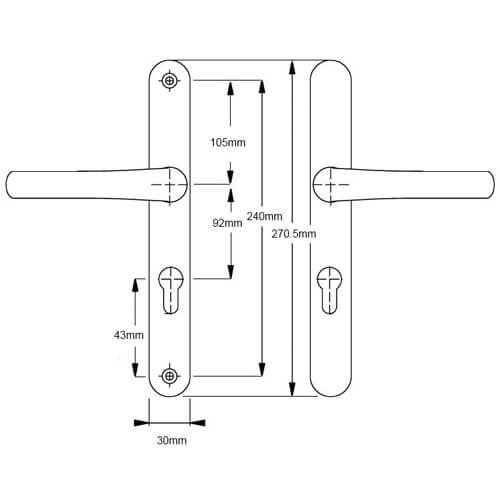 This Easyfit handle set has unsprung 92pz internal and external levers on a 270mm x 30mm backplate which is available in white and gold finishes.
