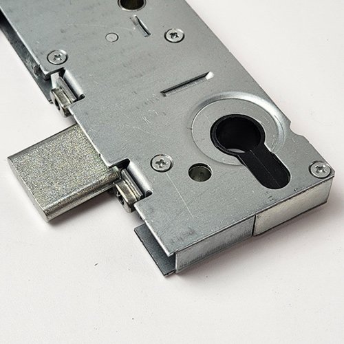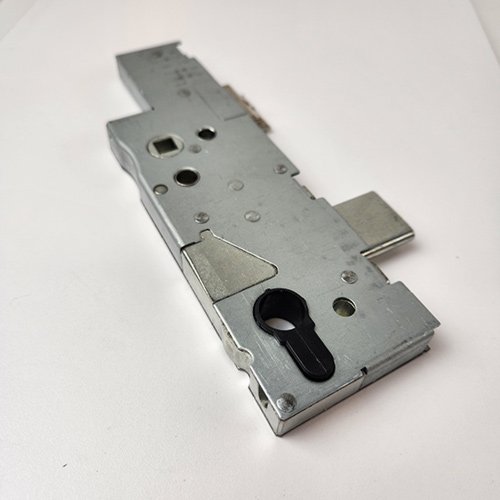 Centres are positioned at 62mm and 92mm, with the top spindle being 122mm from the bottom of the case. Single spindle locks have a round hole where the second spindle would normally be located. The gearbox is pierced to accept a bolt through fixing 19mm from the top spindle, and the slot above that, for fixings is 42mm above the spindle.