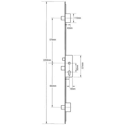 ERA multipoint door lock gearboxes are very distinctive, with a square design and no corner cut outs. The overall length of the gearbox is 221mm and the width is the backset plus 18mm.