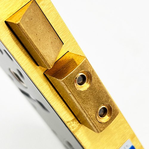 The brass deadbolt contains hardened steel rollers to help prevent against hacksawing.