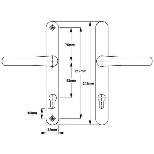 The distance between the fixing screws is 212mm with the bottom screw positioned 18mm below the euro profile cut-out.