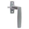 A unique handle which features fixed positions to hold the handle in the open or closed positions.