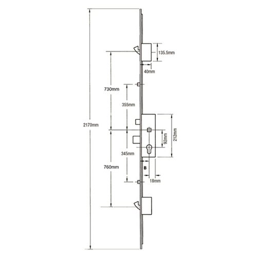 This Fuhr 855 – Key Wind multipoint door lock features 2 Rollers, 2 Hooks, 1 Deadbolt & 1 Latch.