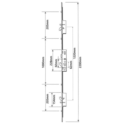 This Fullex XL multipoint door lock features 4 Rollers, 3 Hooks1 Latch & 2 Anti Lift Bolts.