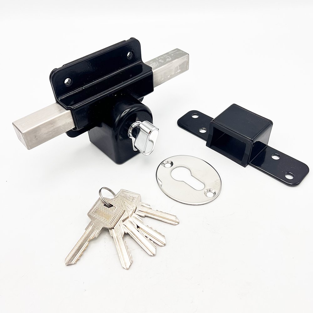 The Gate Rim Lock – single cylinder euro profile long throw lock comes with comprehensive fitting instructions with a self-adhesive drilling template for easy installation and is available in black finish.