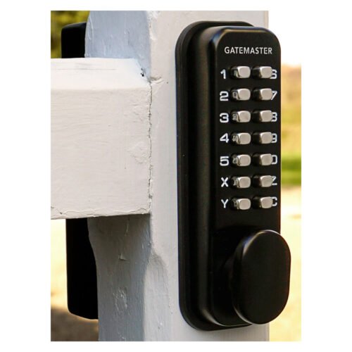 - Auto-latching – close the gate and the latch bolt latches into the gate frame. To open the gate, enter the code and turn the handle