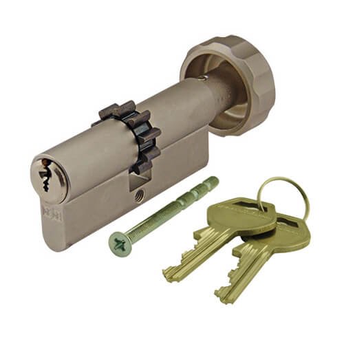 This is the pExtra Plus TS007 1* euro key & thumbturn cog cam cylinder and features the Duffell’s restricted profile. The thumbturn is on the 1st size & the keyway is on the 2nd size. This uses a 10 tooth cog cam used for Mul-T-Lock case.