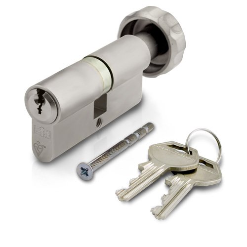 This is the pExtra Plus TS007 1* euro key & thumbturn cylinder and features the Duffell’s restricted profile. The thumbturn is on the 1st size & the keyway is on the 2nd size.