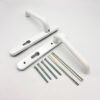 They are supplied as a pair complete with an 8mm square spindle & 2 colour co-ordinated bolt through M5 screws to suit door thickness 56-70mm.