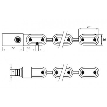 thick links with the comfortable use of a lock. If you do not want to depend on a padlock to close your anti-theft chain, the C10 offers this simple but reliable solution. Due to its length of 1.2 metres, the C10 is suitable for big and medium sized motorbikes. Features Links: Made of zinc plated steel with anti-rust protection, Black nylon cover, Square section, Diameter: 10 mm. Length: 1,20 m. Opening / locking: Lock with key retaining system when the chain lock is open, Plastic protection to prevent dust and humidity from entering the lock. Key: Laser type key, Supplied with 2 keys. Packaging: Cardboard display.