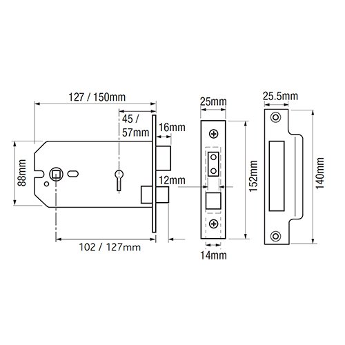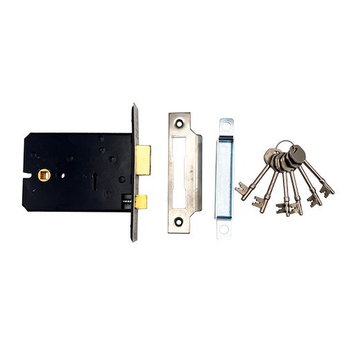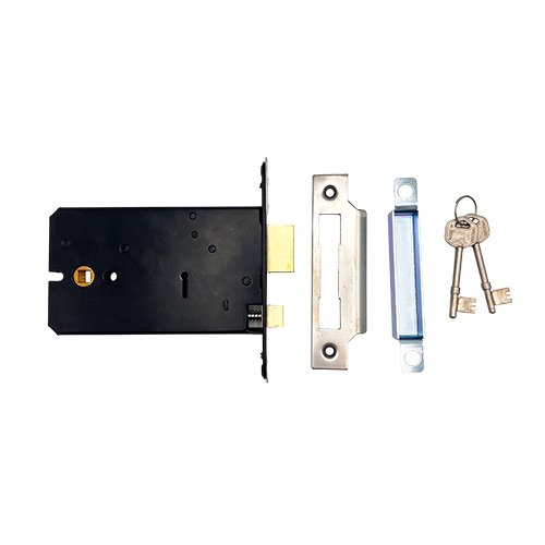 The latch is operated by a lever handle on either side, the deadbolt is operated by a key from either side. Pierced to accept 38mm bolt through furniture. The latch is easily reversible, enabling these mortice locks to be used on either side of a door.