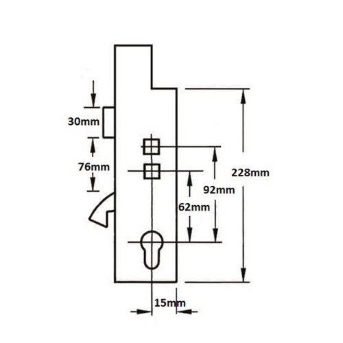Ingenious gearboxes have a distinctive double spindle arrangement with centres at 62mm and 92mm. Both followers are unsprung so we’d recommend the use of sprung door furniture. The top corner of the gearbox is also cut out.