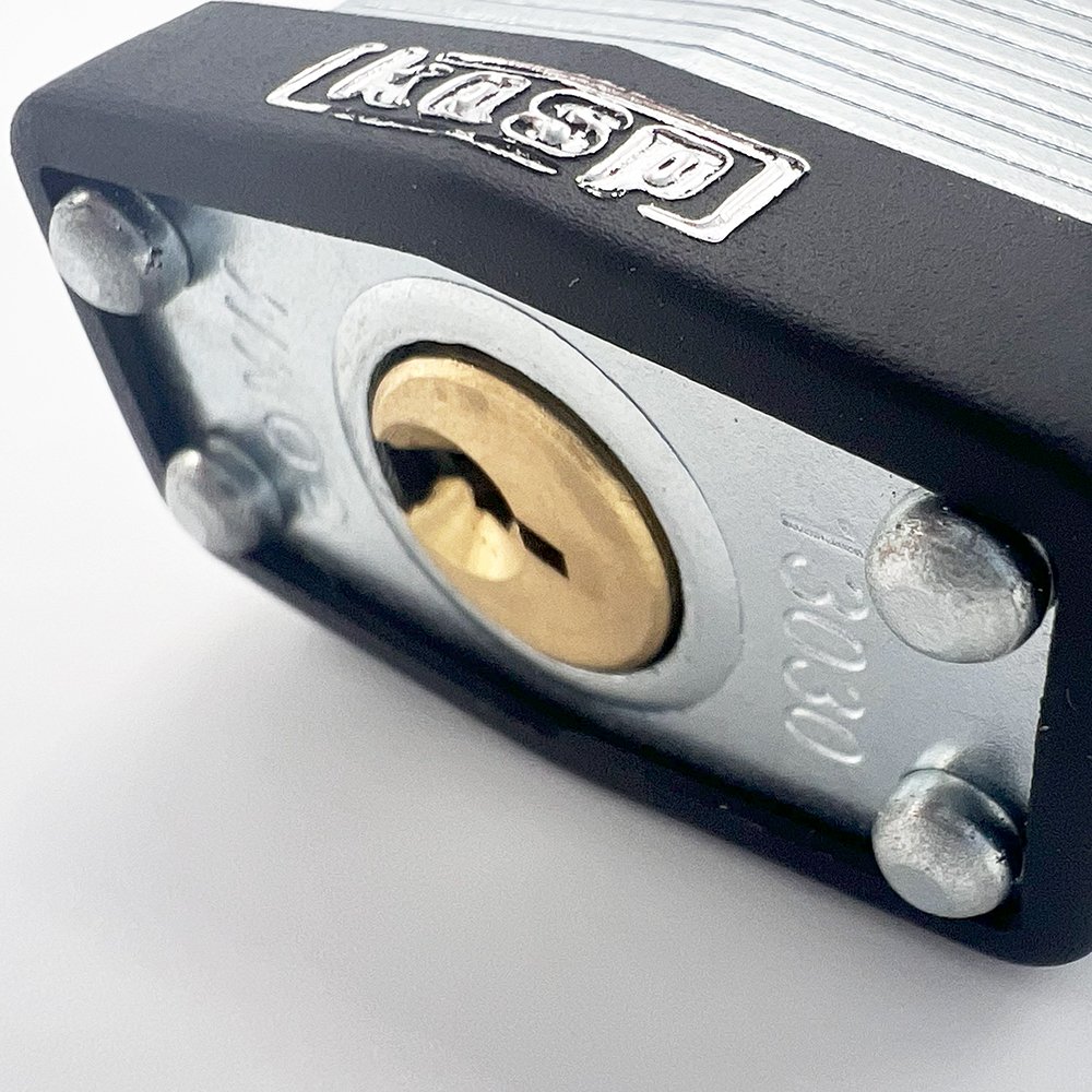 The robust design of this classic style of padlock ensures that it remains as popular as ever. The Kasp 130 series, with a hardened steel shackle, double bolted locking mechanism, paracentric keyway and anti-pick cylinder, combines the latest lock technology with a traditional style.