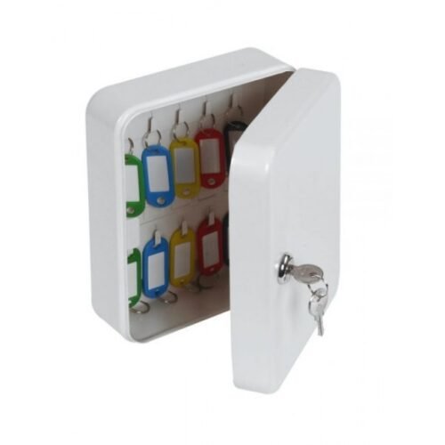 Key Cabinet – 20 Fixed Hooks. • Key locking cabinet with fixed hooks • Ideal for the home or office • Easy to view dividers & separators and fixings included • Supplied with 2 keys • Powder coated finish