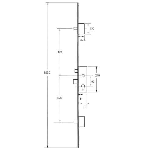 KFV multipoint door lock gearboxes are single spindle and 92mm centres.
