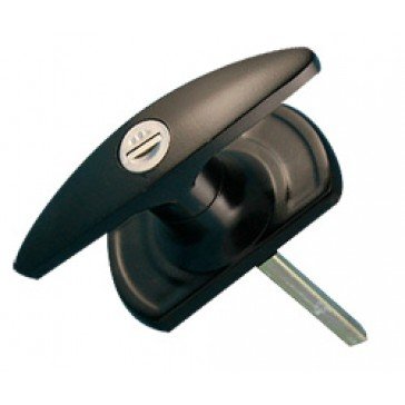 L & F garage handle – short post, square spindle. 76mm x 44mm face-plate with two 13mm long M6 threaded fixing spigots spaced 51mm apart. A 79mm long x 8mm square shaft which can be easily cut down to match the length of your original.