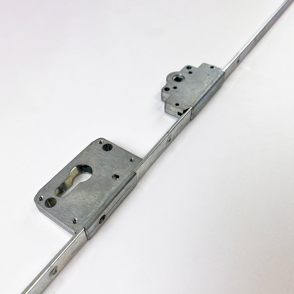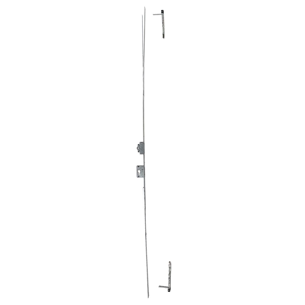 This Liniar espagnolette kit features a euro cylinder cut out with a 35mm backset and a pair of shoot bolts.