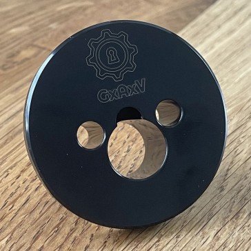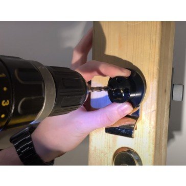 A locksmith tool designed for drilling retaining screws on rim cylinders when the snib is engaged on Nightlatches. Once cylinder is removed, the jig is reversed and there is another guide to drill for snib location, meaning there is no longer any need to smack the case off the back of the door for access.