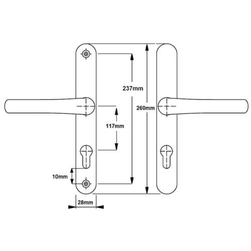 The distance between the fixing screws is 240mm with the bottom screw positioned 10mm below the euro profile cut-out.