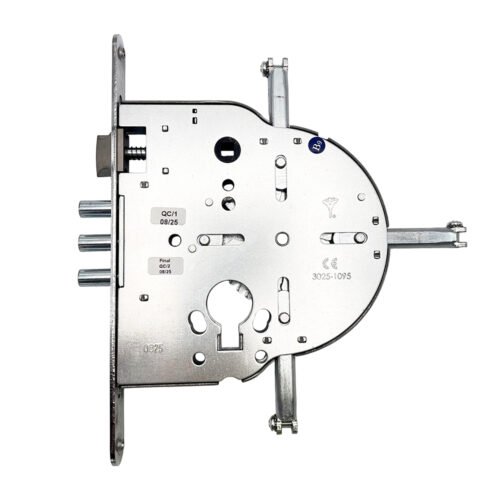 The Mut-T-Lock 4-Way Locks (235, 265) can be installed inside wood or metal doors to provide 4-way multi-bolt locking. Very common on high security commercial doors these centre locks connect to vertical and horizontal shootbolt extentions to offer 4 way locking and a very high security solution. These locks feature Key Wind operation requiring Mu-T-Lock cog cam type cylinder. The key can also retract the latch, but lever handles are also available to suit these locks (Mul-T-Lock SH300 type furniture)