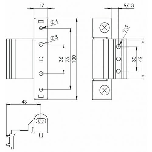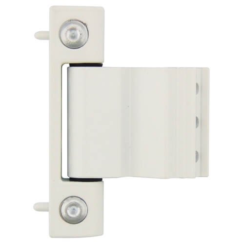 Eurogroove fitting door hinge. Use with bevelled/chamfered profile systems. 4mm horizontal adjustment without removing the door. 80kg max door weight (3 hinges). Simple screwdriver adjustment.