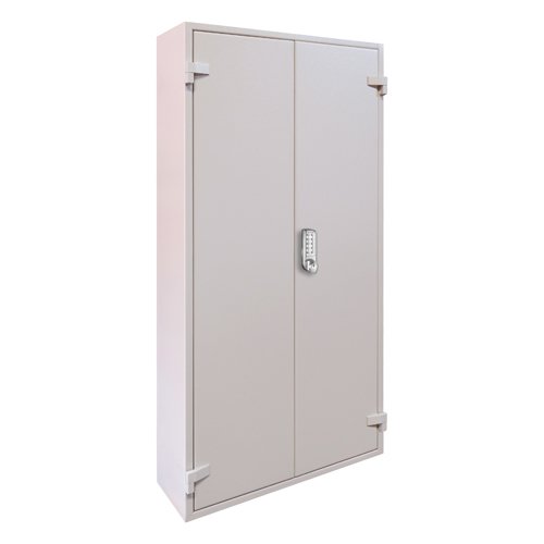 LOCKING: KC0070E – Fitted with a high quality electronic lock with key override facility. Tested in accordance with BS EN1634-1 2008. Programmable with a 4-6 digit code and can store up to 80 user codes. Tamper time out and low battery warning.