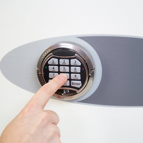 LOCKING: KS0040E – Fitted with a high security VdS class II electronic lock with time delay, dual code function & multiple user codes.