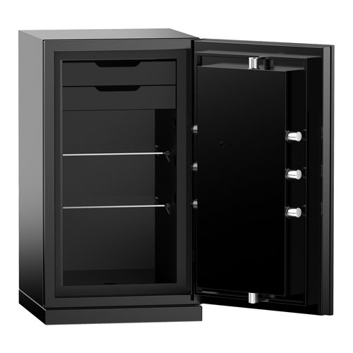 LOCKING – Fitted with an advanced high security fingerprint and touch panel lock. the lock can store up to 32 different fingerprints. the clear LED display also makes operating the lock extremely easy with a 4-16 digit user code. To further enhance security, the lock also features tamper lockout, internal alarm, dual control, hidden code and unlimited scrambled code and low battery indication as standard.
