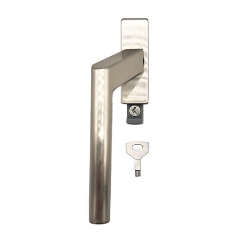 A common handle found on systems manufacutred by Rationel windows, Handle moves in to 3 positions. This locking version is supplied with 1 key per handle and is availably in left and right hand offset options only. The unique handle is easily identified by the position on the locking keyway at the top of the backplate. This is a high quality product usually found on contemporary window systems.
