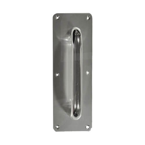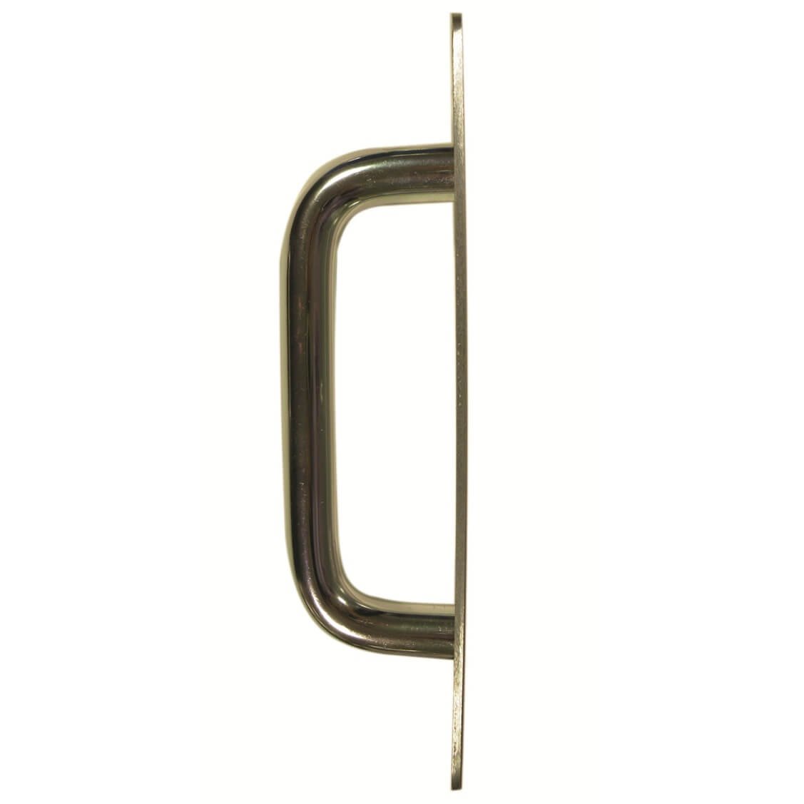 These D shaped, 19mm diameter round bar pull handles on plate are available in 3 lengths, supplied in singles and complete with fixings.