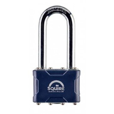 SQU098A SQUIRE 37/2.5 STRONGLOCK LAMINATED LONG SHACKLE PADLOCK • Covered Steel body with anti-corrosion finish • Hardened Steel shackle • Double deadlocking & ball-locking pin tumbler mechanism • Supplied with 2 keys (Key blank is KBP4) • Finish: Laminated Steel