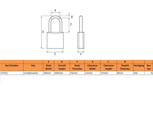 Squire CP50 50mm Long Shackle Combination Padlock