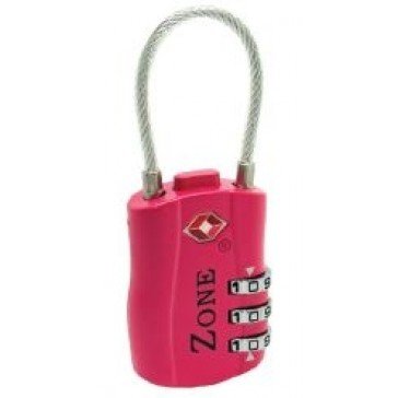 TSA212-PINK ZONE TSA APPROVED LONG CABLE COMBINATION PADLOCK • The TSA series combination padlock is approved by the Travel Sentry Administration • TSA approved locks allow luggage to be unlocked and inspected by security authorities globally, without damage to the lock or case • Suitable for most travel bags and suitcases • 3 Dials • Cast metal body with attractive & durable colour finish