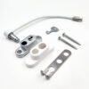 The Window Restrictor fits snugly under the Window Espag Handle, simply remove the Espag Handle and place the plate between the Handle and window frame before fixing in place again. Avoid drilling more holes into the window than necessary (Only the locking side is fixed with Screws).