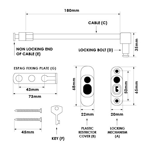 These TSS Key Locking Cable Window Restrictors for Espag Window Handles are suitable for use on all kinds of Windows fitted with an Espag Window Handle.
