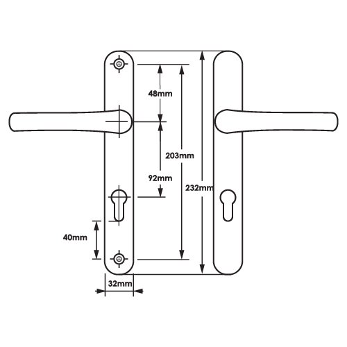 TSS Lever Lever UPVC Multipoint Door Handles – 92mm PZ – Sprung – 203mm Screw Centres – 232mm Backplate