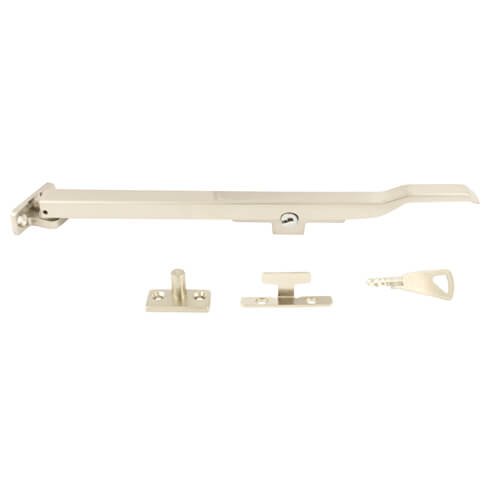 This casement stay is supplied as a complete kit with stay arm, locking clip, key, pin, and fixing screws.