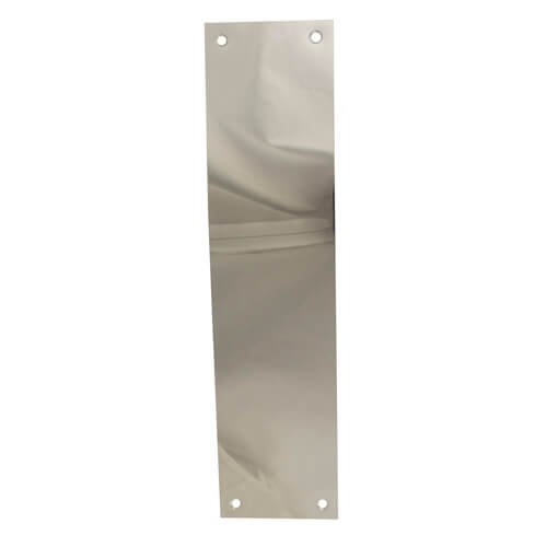 A plain face-fix screw on finger plate designed to protect doors in high use and often used in environments where hygiene needs to be maintained. With 4 countersunk fixing points to ensure screws sit flush with the plate face.
