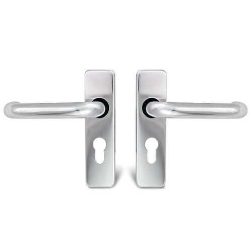 These TSS handles are a round bar, return to door sprung lever on plate handle set ideally suited to cost-sensitive projects.
