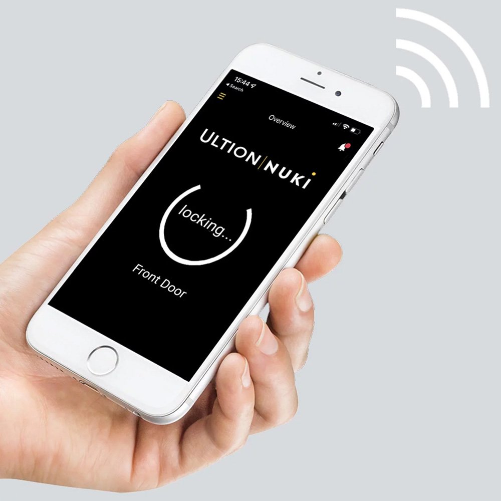Ultion is compatible with any euro-operated lock with 92mm centres and 215mm, 211mm or 122mm screw centres. For Key Wind and Automatic operation locks, Nuki can be used to fully lock and unlock the door, using only the app, remote, keypad or smart home connection. This also allows the auto lock and unlock function to lock and unlock the door based on a timer. For the lift lever and nightlatch (including both split spindle and double spindle operation), the user will need to throw the handle to engage the locking points, before Nuki can turn the cylinder. A bridge or Nuki Plus is required for smartphone Wi-Fi access.
